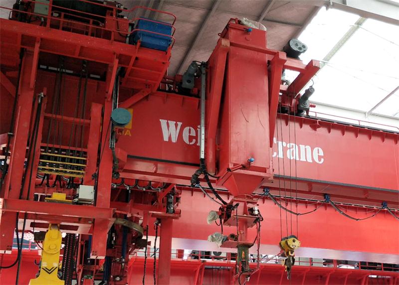 電解鋁多功能起重機(jī)是大型預(yù)焙陽(yáng)極電解鋁生產(chǎn)的關(guān)鍵工藝設(shè)備,能適應(yīng)高溫、大電流、強(qiáng)磁場(chǎng)、多粉塵及HF煙氣的特殊環(huán)境,它能完成預(yù)焙陽(yáng)級(jí)電解槽的下列工藝操作:
